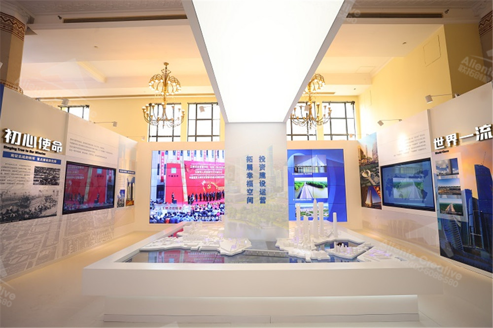 “火雷精神”抗疫醫院沙盤展項,包括火神山醫院、雷神山醫院、負壓病房模型等,以及“中國建筑 建證戰疫”專題片,綜合利用多媒體、數字化展陳技術,發揮“屏幕、模型、沙盤”協同互動效應,踐行人民至上、生命至上理念,在國內奮力建成以火神山、雷神山醫院為代表的119 所應急醫院。 “拓展幸福空間”中建幸福城沙盤展項,包括由多維信息綜合呈現的數字化城市模型沙盤,以及中國建筑品牌形象片。精選中國建筑全產業鏈、全業態、全球代表性建筑作品,以影像屏幕為載體,搭建起一座由實體建筑模型組合而成的“未來之城”“智慧之城”“幸福之城”。緊密結合投資建設領域特色,突出“可看性、體驗性、科技性”,踐行企業使命、服務國家戰略、勇擔改革重任、引領行業發展、打造“具有全球競爭力的世界一流企業”的品牌之路。